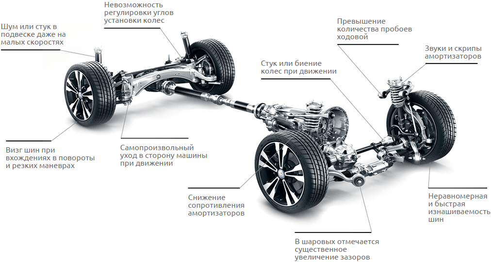 Диагностика подвески автомобиля включает в себя: